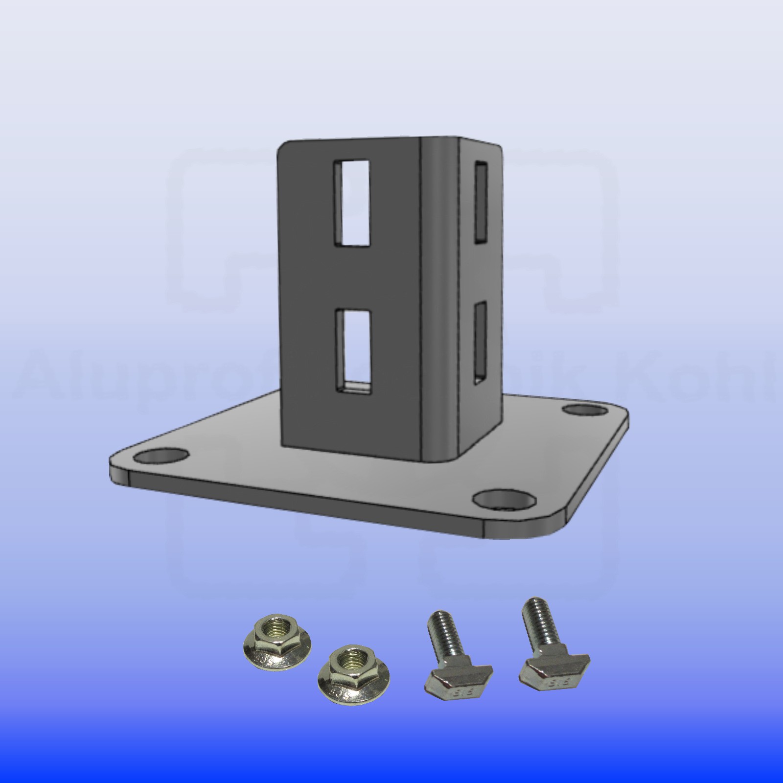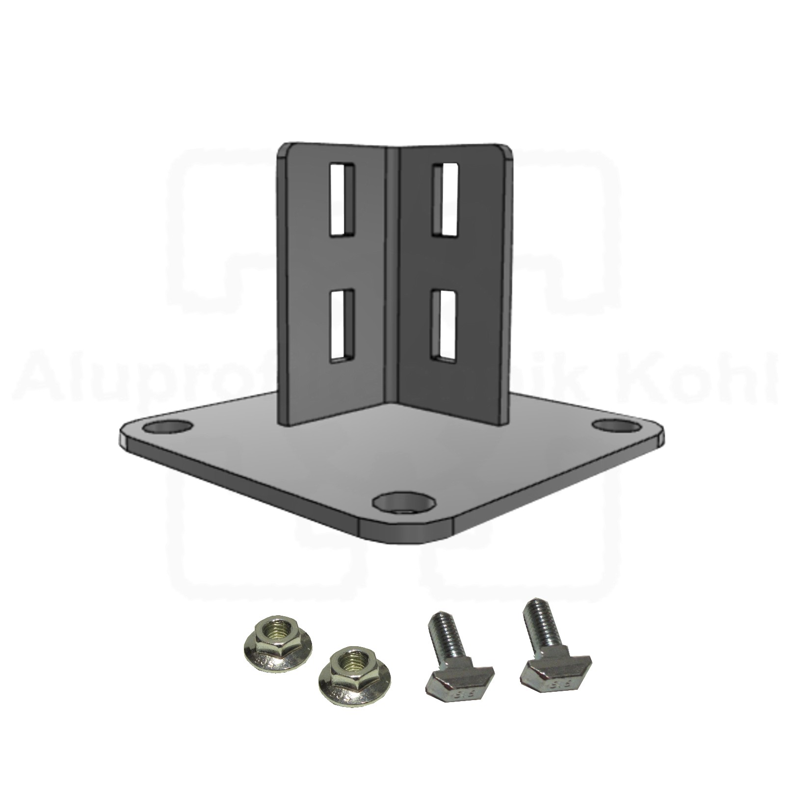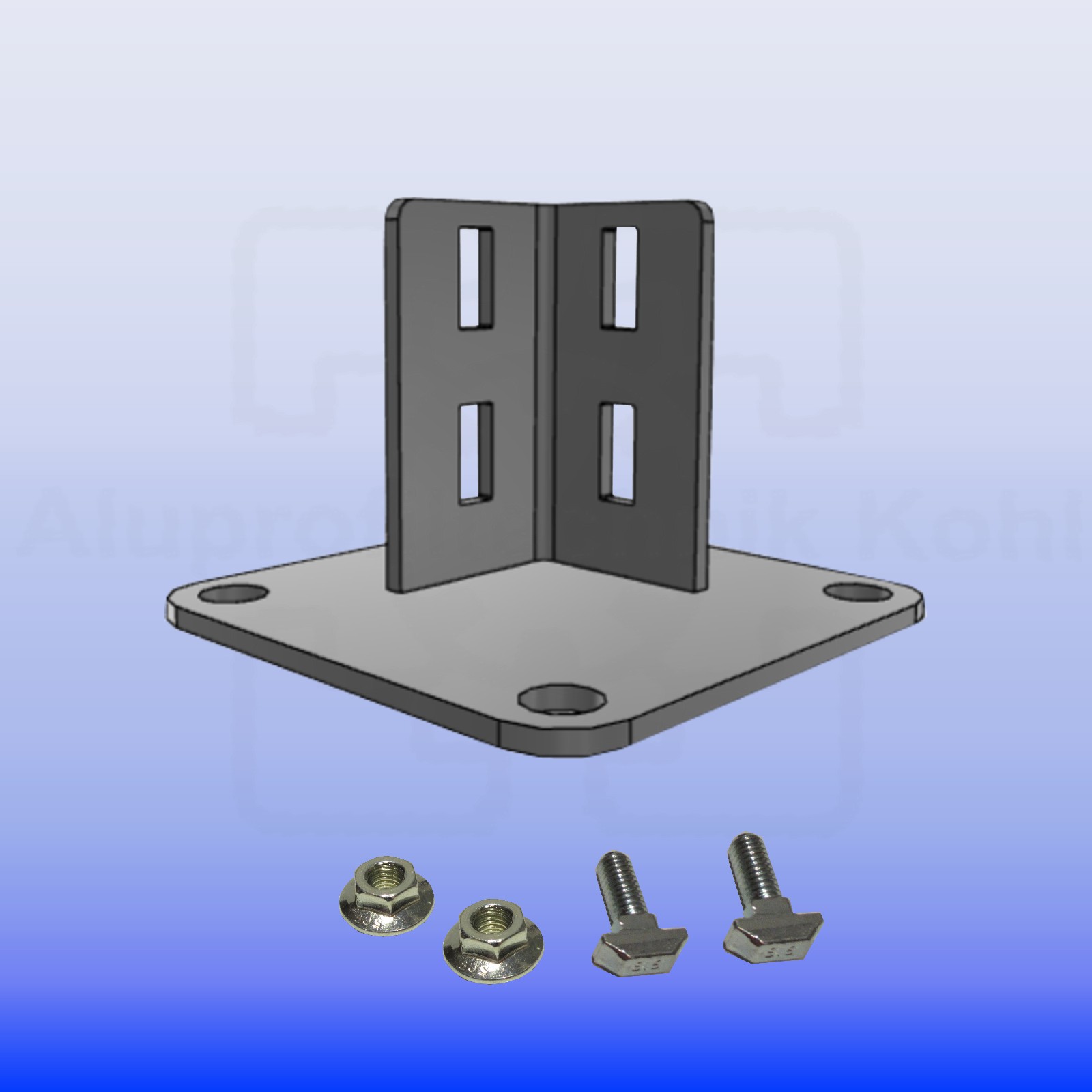Fußkonsole zur Befestigung von Alu-Profilen 45x45 mm auf dem Boden oder an der Decke.