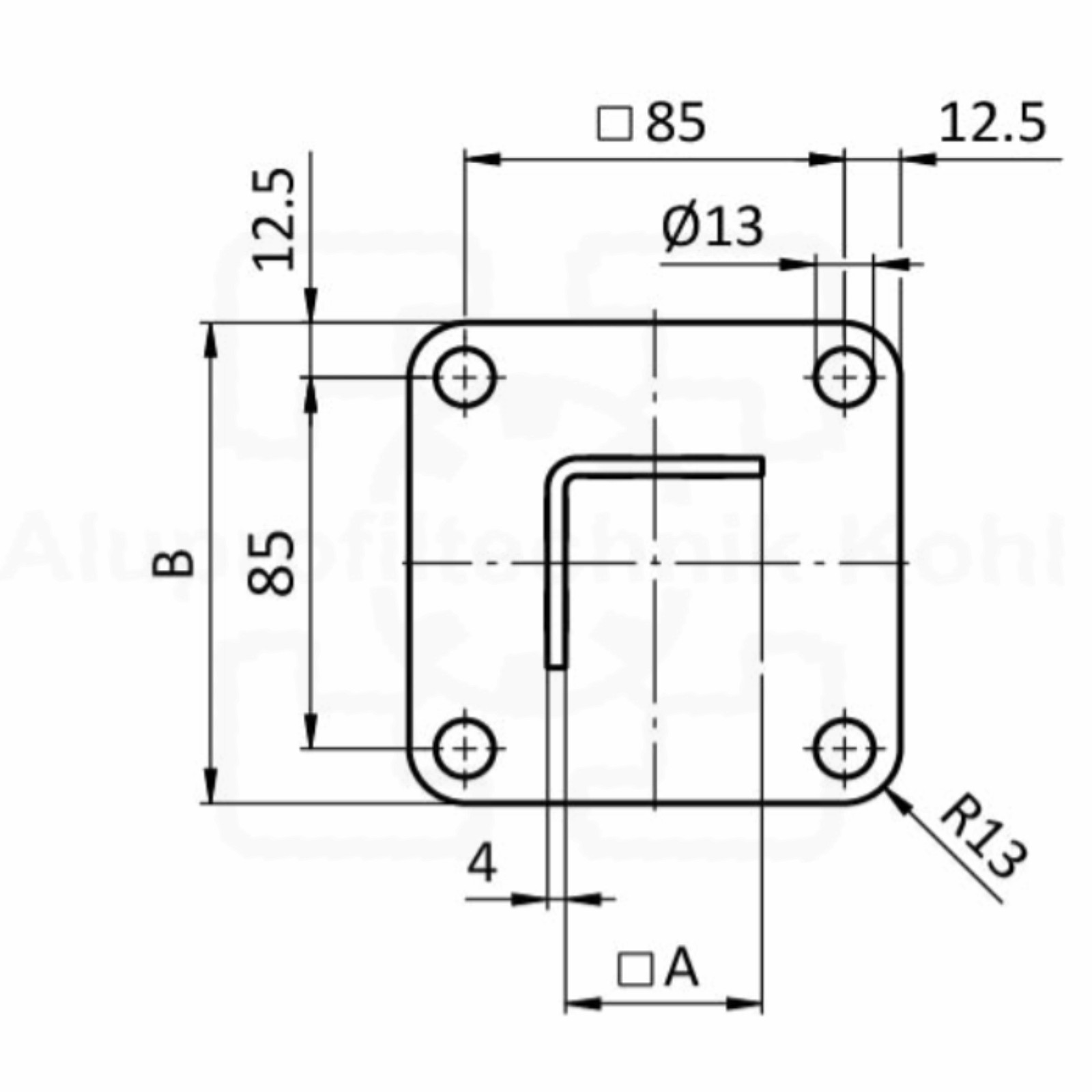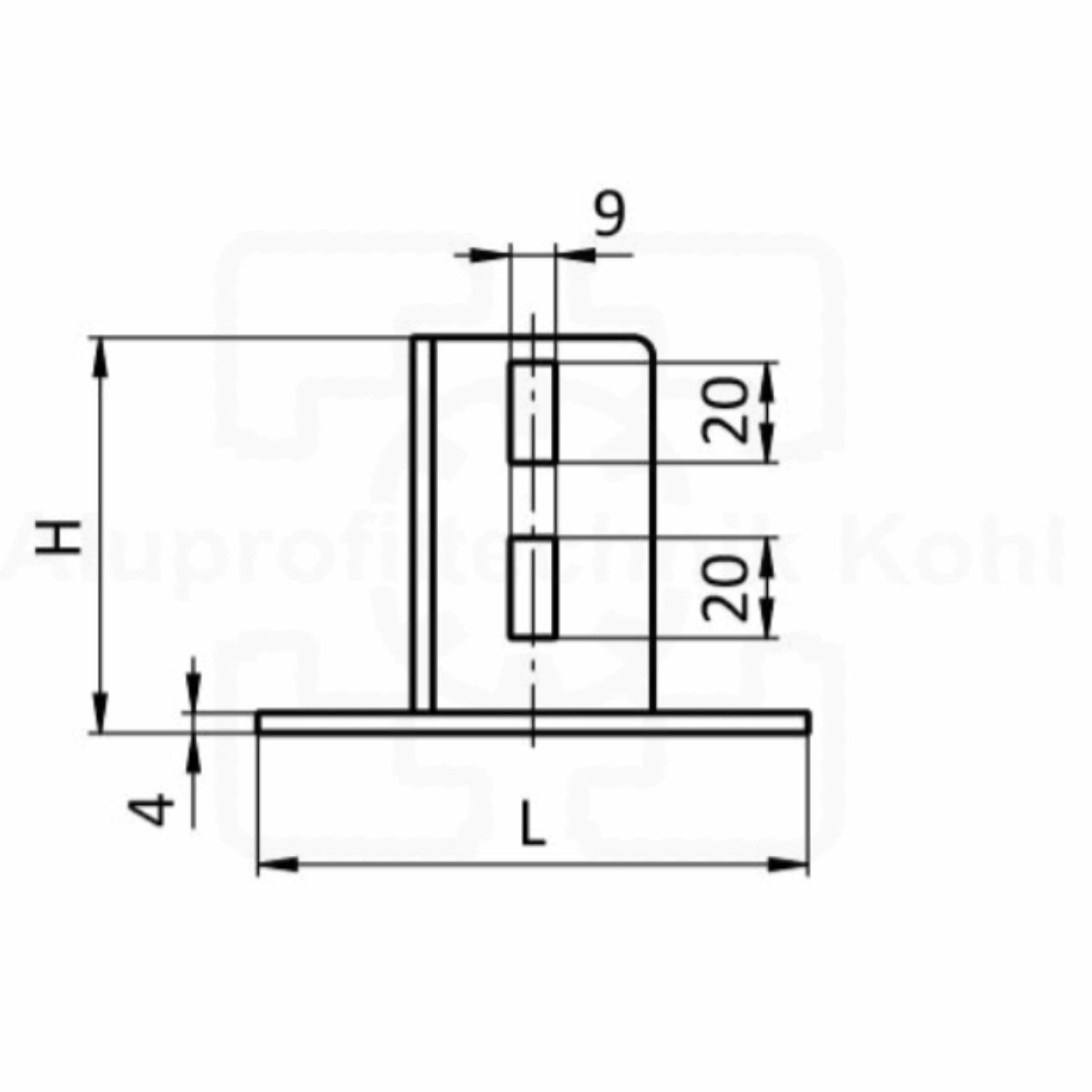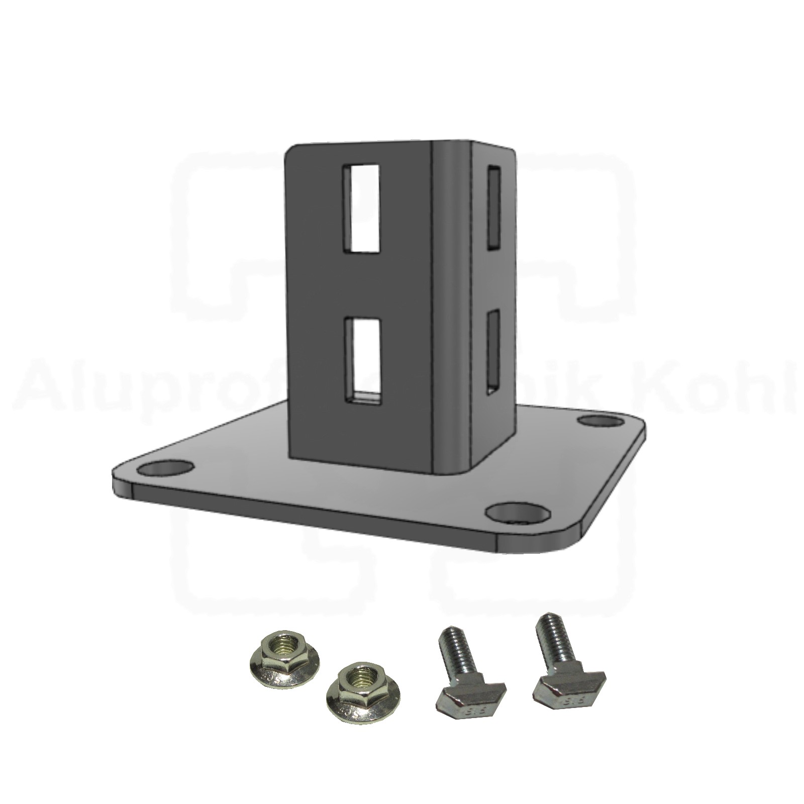 Fußkonsole zur Befestigung von Alu-Profilen 45x45 mm auf dem Boden oder an der Decke.