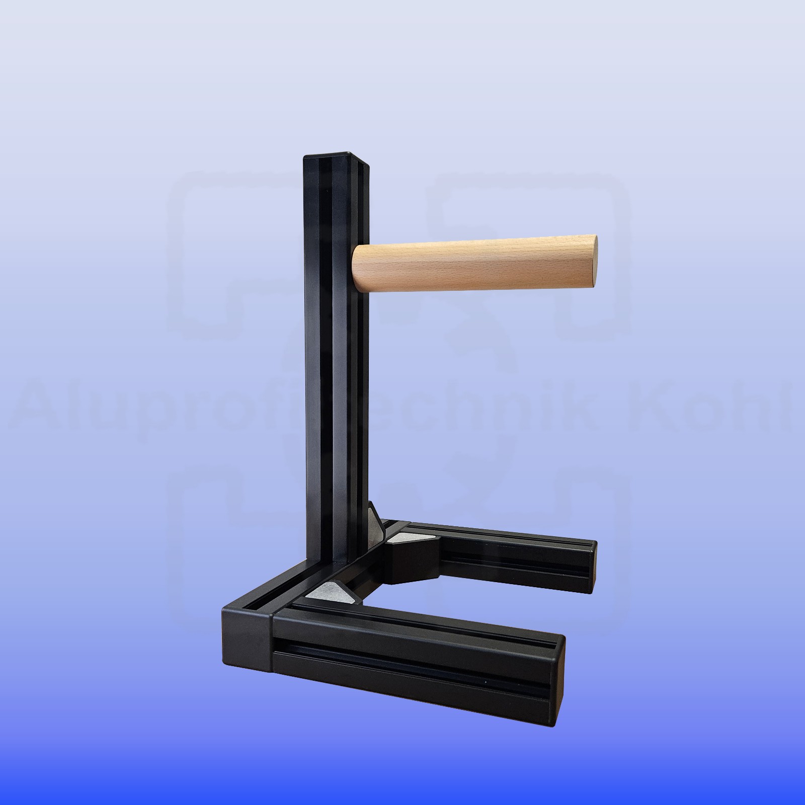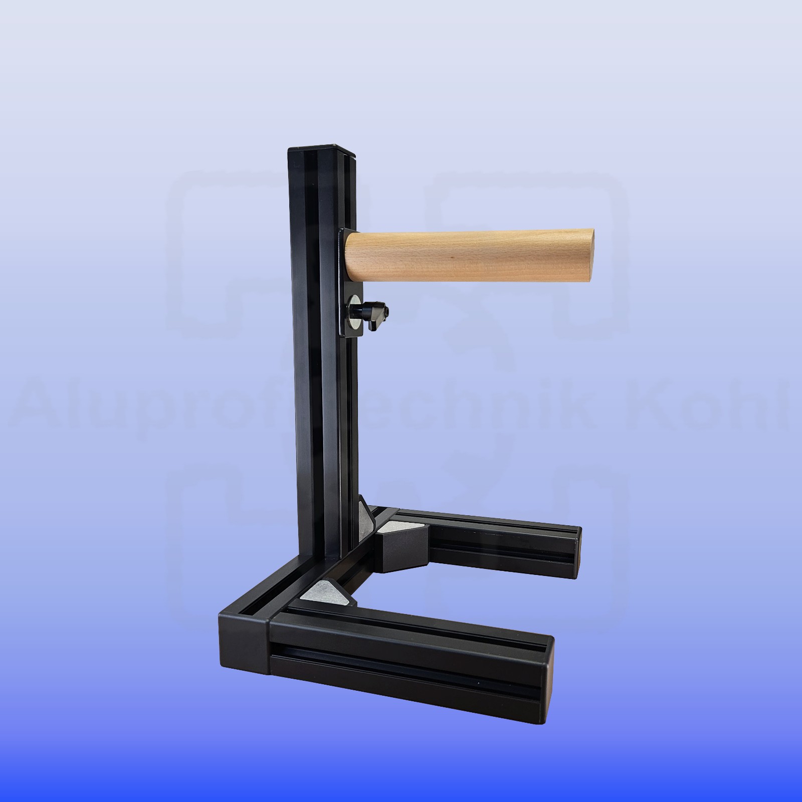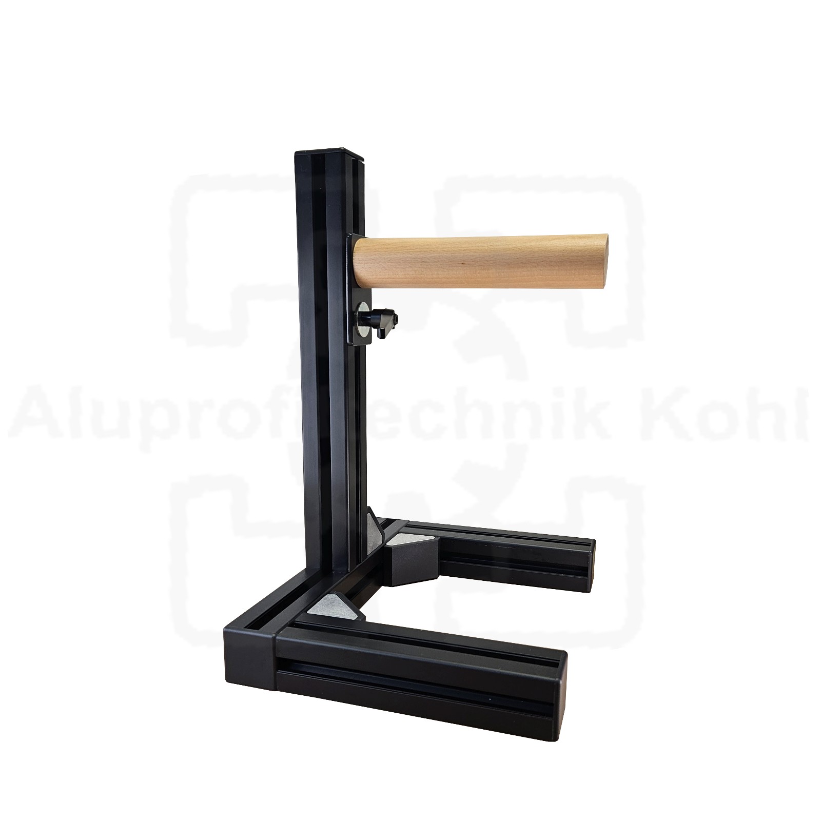 Die Auflage besteht aus Hartholz und wird durch Drehen in der Höhe verstellt.