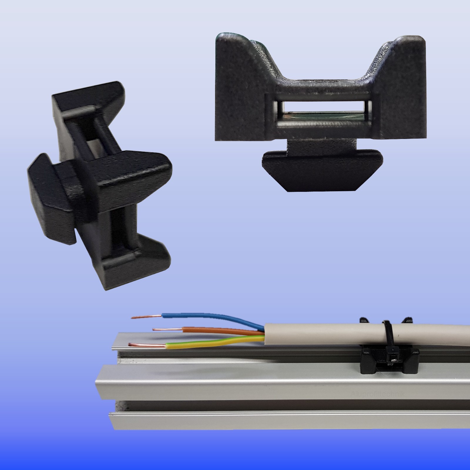 Schläuche, Kabel oder Ähnliches lassen sich einfach mit einem Kabelbinder an diesen Halter
