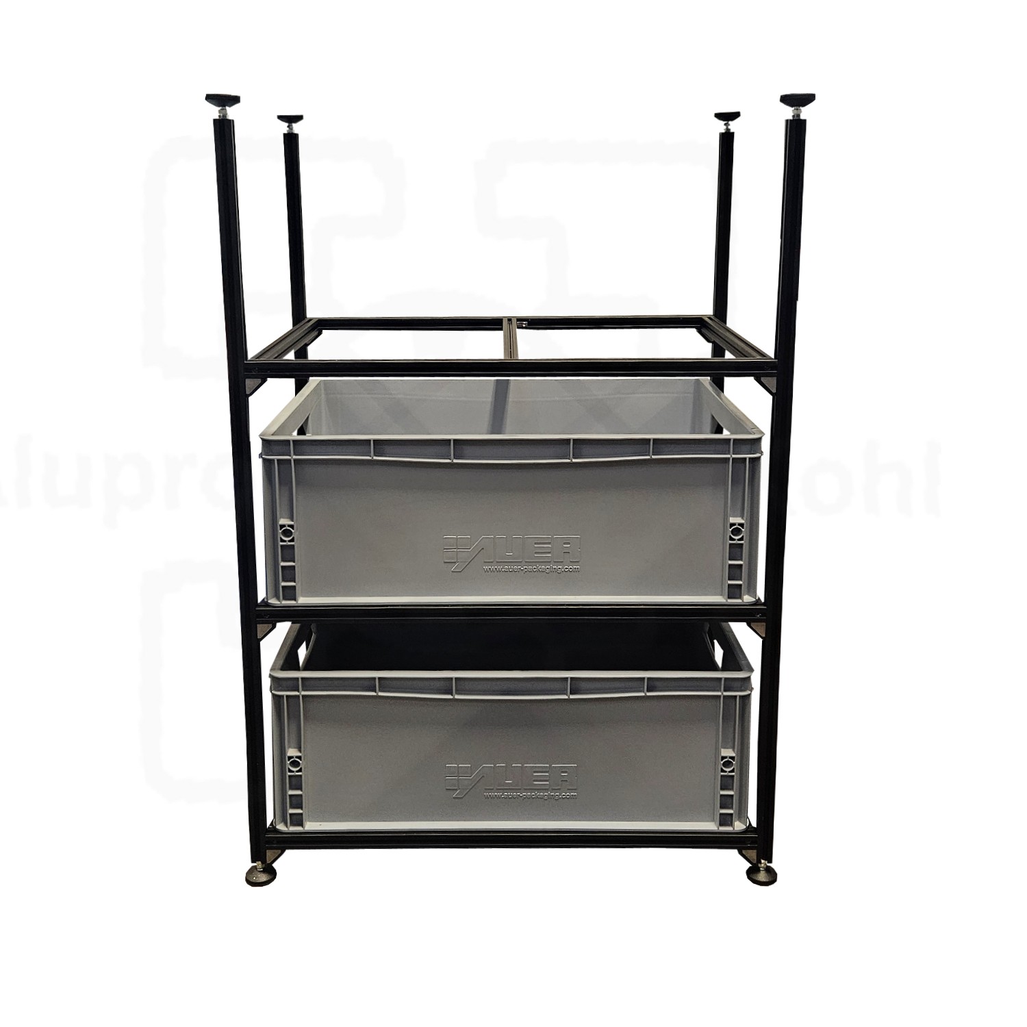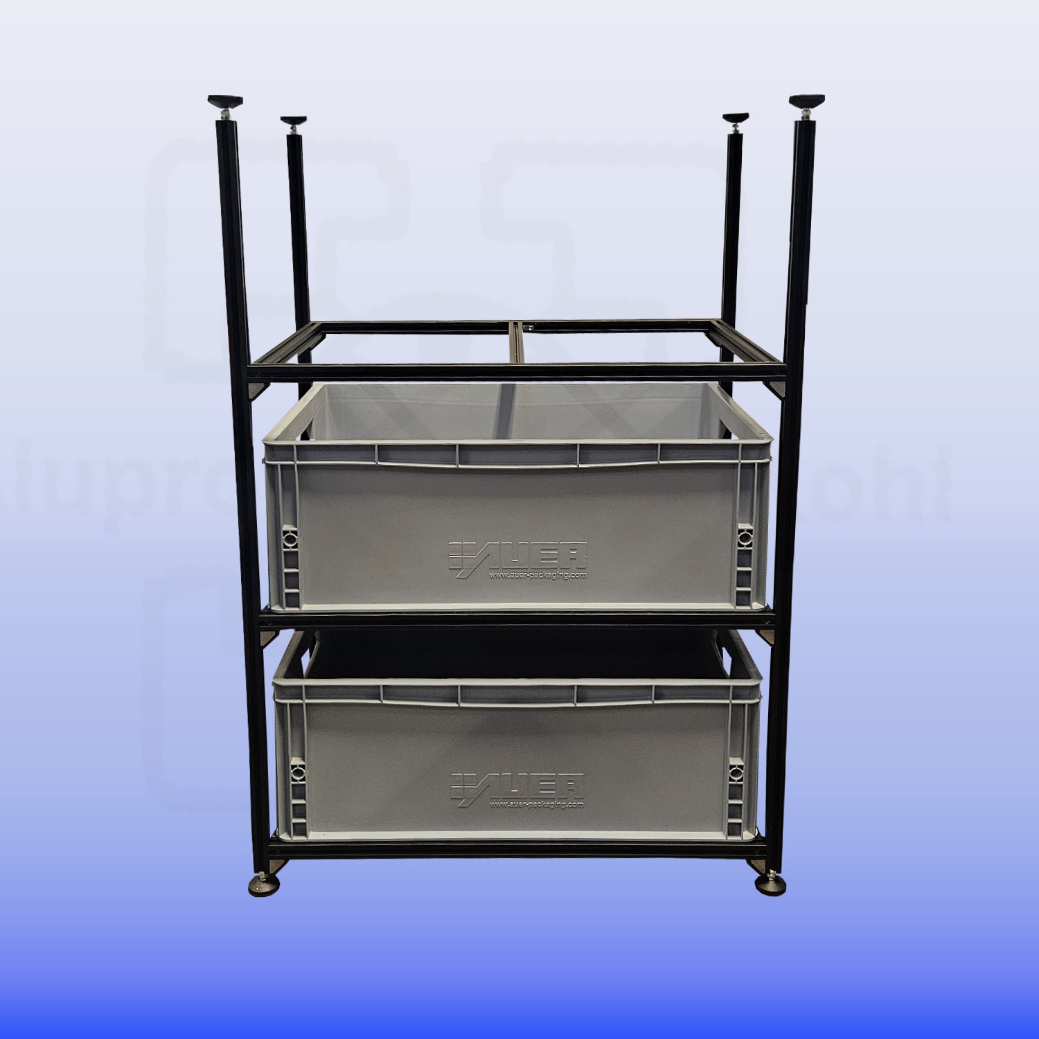 Unser Regalsystem ist ideal geeignet für Euroboxen, da diese robust und leicht sind.