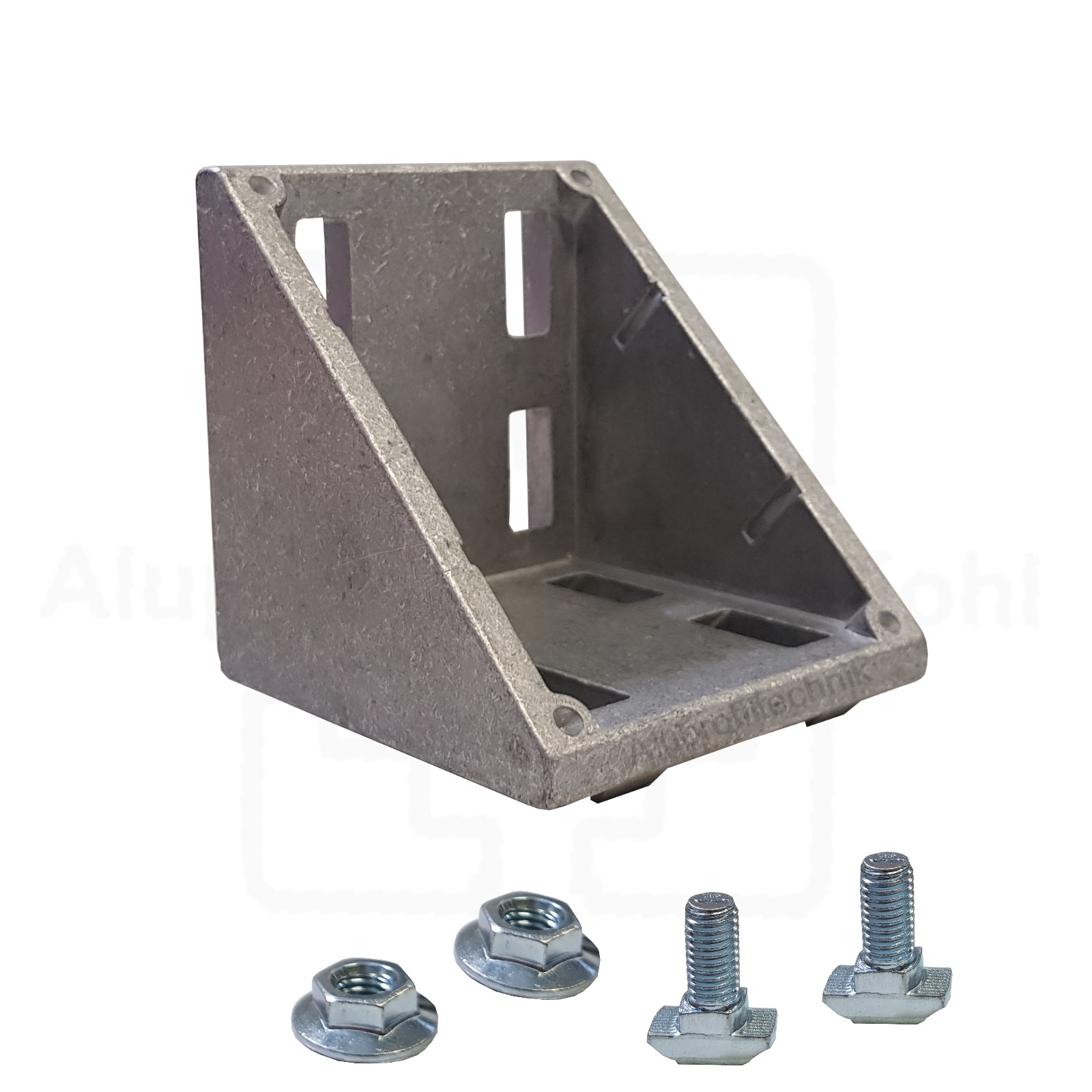 Winkel 80 x 80 Nut 10 mit Befestigung für Aluprofil Nut 10